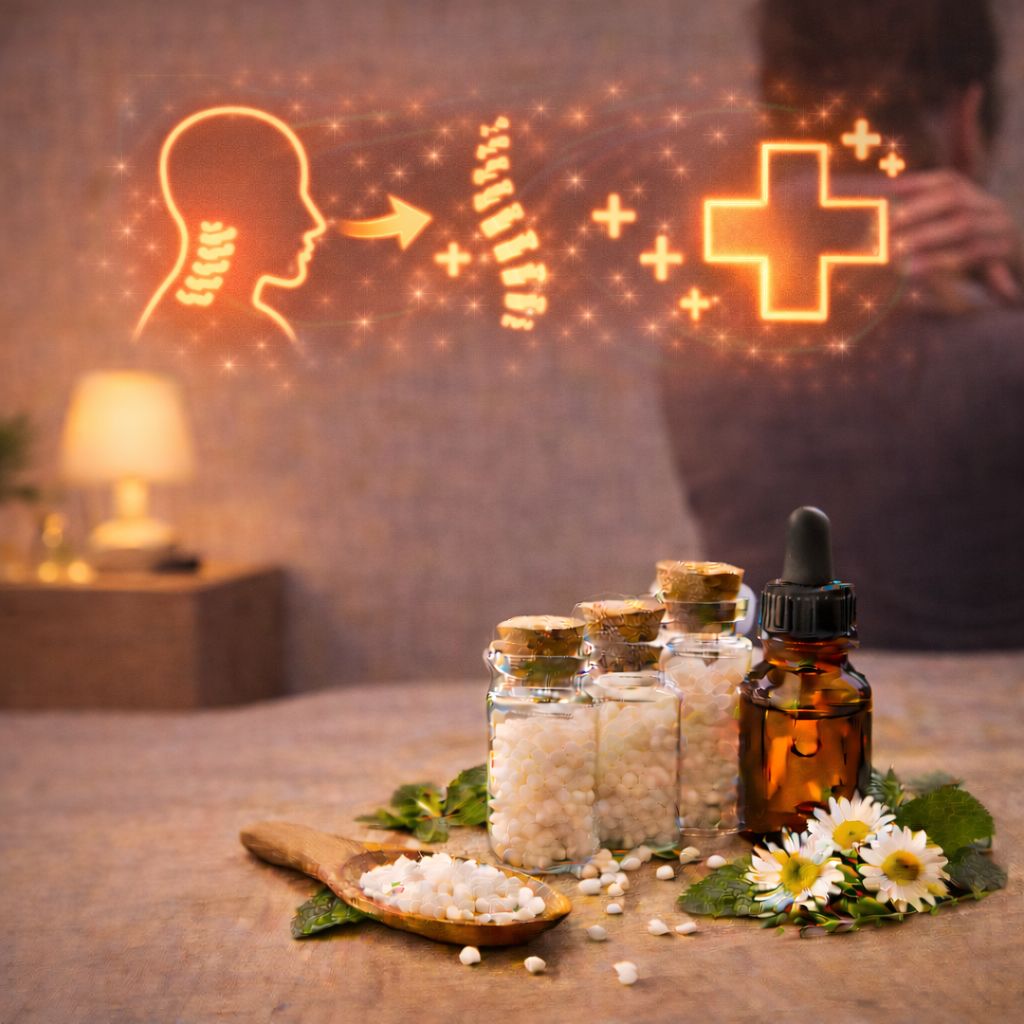 Homeopathic Treatment for Cervical Spondylitis focuses on providing natural and supportive care to help manage neck pain, stiffness, and discomfort caused by degenerative changes in the cervical spine. This treatment approach is commonly used for symptoms such as neck and shoulder pain, restricted neck movement, headaches, dizziness, tingling or numbness in arms, and muscle tightness. Homeopathy works holistically by addressing inflammation, nerve sensitivity, muscular tension, posture-related stress, and constitutional weakness through individualized treatment. Safe, gentle, and non-habit forming, homeopathic care supports improved neck mobility, pain relief, and overall spinal health naturally.