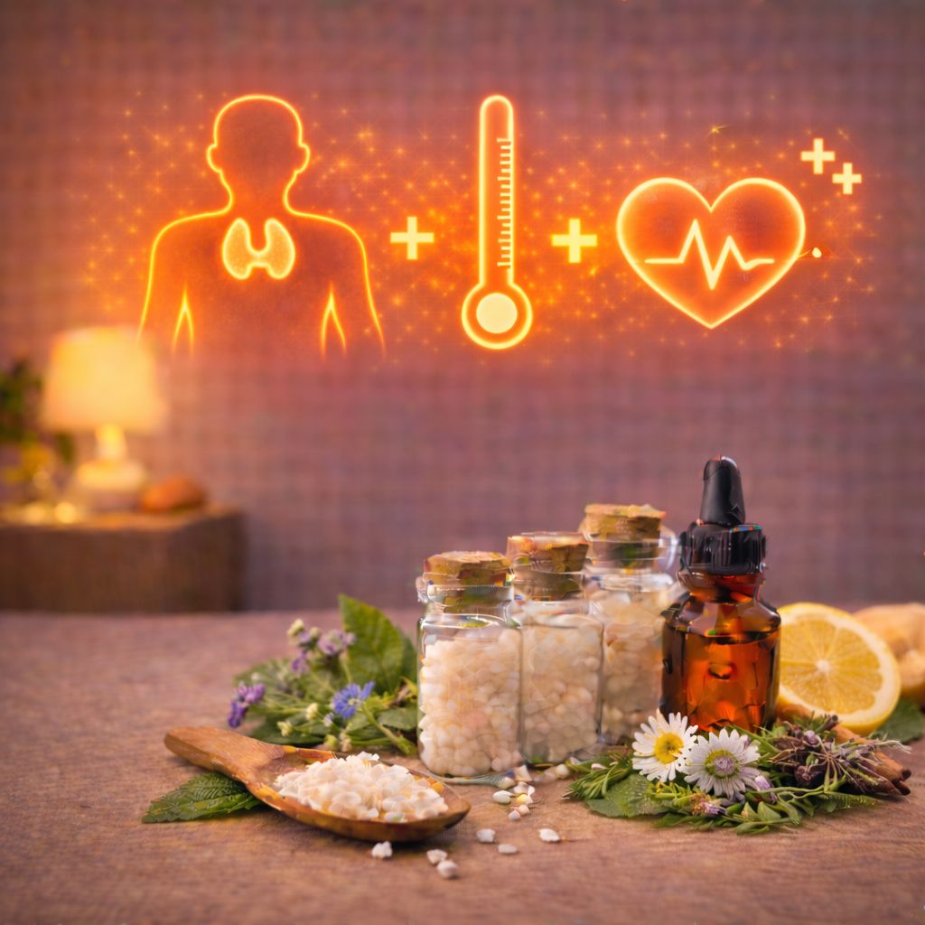 Homeopathic Treatment for Hyperthyroidism focuses on providing natural and supportive care to help manage overactive thyroid function and restore hormonal balance. This treatment approach is commonly used for symptoms such as weight loss, excessive sweating, heat intolerance, rapid heartbeat, anxiety, restlessness, tremors, fatigue, and menstrual irregularities associated with hyperthyroidism. Homeopathy works holistically by addressing hormonal imbalance, metabolic overactivity, nervous system sensitivity, and individual constitutional factors through personalized treatment. Safe, gentle, and non-habit forming, homeopathic care supports better thyroid regulation, emotional balance, improved energy levels, and overall well-being naturally when used as supportive care.